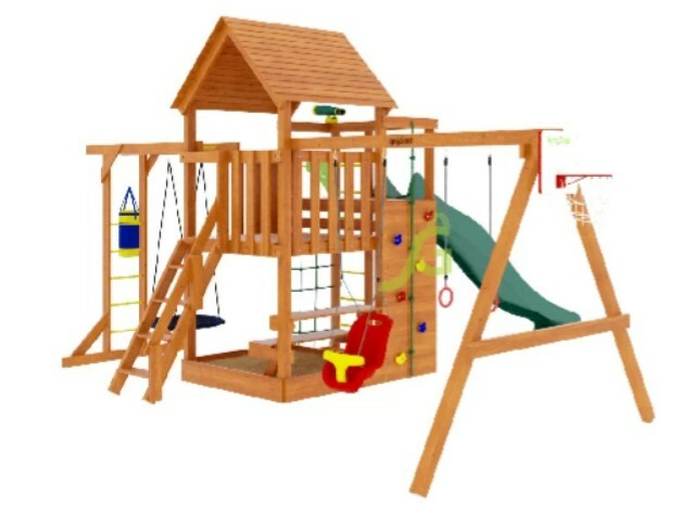 Детская площадка из дерева станет воплощением всех фантазий вашего ребёнка, поможет развить его навыки и укрепит иммунитет благодаря увлечённым играм на свежем воздухе. Сделать заказ на сайте очень просто, оставьте заявку на сайте или позвоните нам. Менеджер подробно проконсультирует вас и, при необходимости, поможет подобрать дополнительные игровые элементы. Комплектация детской площадки "IgraGrad Панда Фани с балконом мод.2": конструкция башни, стойки из клееного бруса 90х90; конструкция скалодром с камнями; конструкция балкон; рукоход; волновая горка 3 м (цвет на выбор); качельный модуль; качели кубельковые со спинкой 1 шт. (цвет на выбор); качели гнездо-паутинка 80 - 1шт. (цвет на выбор) баскетбольный щит; песочница; деревянная лестница; веревочная лестница; комплект фурнитуры; руководство по сборке; Якоря, столик с детской кухней, подушка и металлические перила на лестницу в комплект не входят. Приобретаются отдельно по желанию клиента. Габариты игрового комплекса для детей составляют: